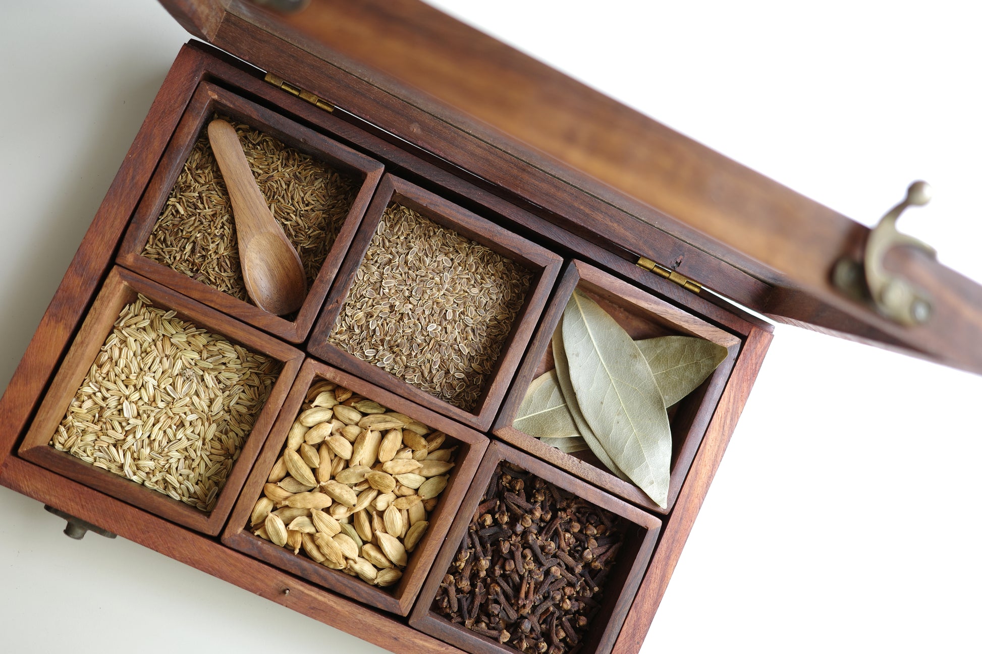 A beautiful blend of function and tradition, this wooden spice box comes with multiple compartments and a glass-lid finish that adds charm to any kitchen.